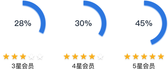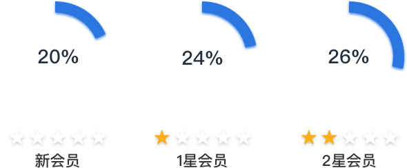 会员星级有6个梯度,星级不同权益不同,星级越高则佣金比例越高、佣金上限也越高,付款周期越短。