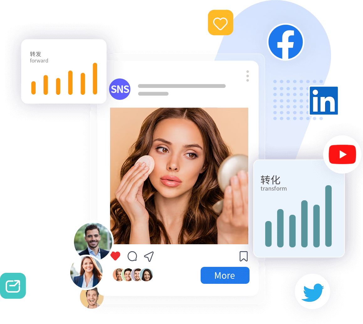 做好网站内部SEO优化,后台可设置关键词、标题标签以及alt图片标签的定义,符合收录规则的网站结构。网站前台设置醒目的询盘按钮,引导用户发送询盘,并且设置社交分享链接,方便传播。