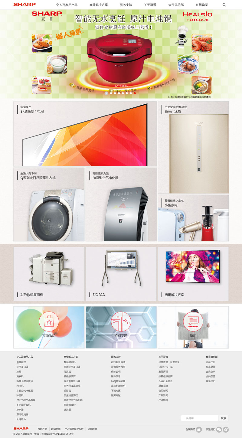 2004年12月,中国根据2001年12月加入WTO时的协定,对商业领域引进外资实行了对外开放,中国的经济导向从出口主导转向了扩大内需。受此推动,夏普于2005年设立了面向中国国内销售的夏普商贸(中国)有限公司(SESC)。此外,为了响应中国政府倡导的建设“创新型社会”政策,于2010年底至2011年初,在重庆、南京两地又设立了研发中心。而为了承担快速扩大的中国事业的总部职能,又于2011年10月在北京设立了地区总部夏普(中国)投资有限公司(SCIC)。 现在,夏普在中国已拥有1家地区总部、6家生产基地、5家销售公司、2家研发中心,2010年包括出口在内中国总事业规模达到约700亿元,正式员工约9千人。对于夏普来说,在中国的事业已经占据了非常重要的地位。