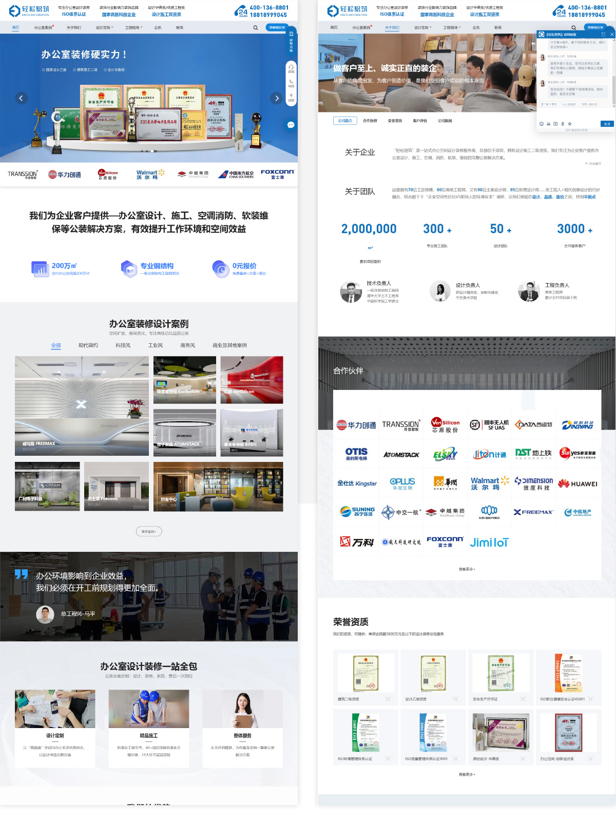轻松易筑”是一站式办公空间设计装修服务商,总部位于深圳,拥有设计施工二级资质。我们专注为企业客户提供办公室设计、施工、空调、消防、软装、维保的完整公装解决方案。 轻松易筑隶属于易筑(深圳)科技有限公司,企业拥有50+设计团队、300+施工团队,并由建材子公司“深圳市易筑嘉会建材有限公司”搭建了“轻松互联”全链条供应链系统,全链路标准化对接,节省客户时间成本,沟通成本,材料成本,也使品牌在一站式公装服务上独具优势。