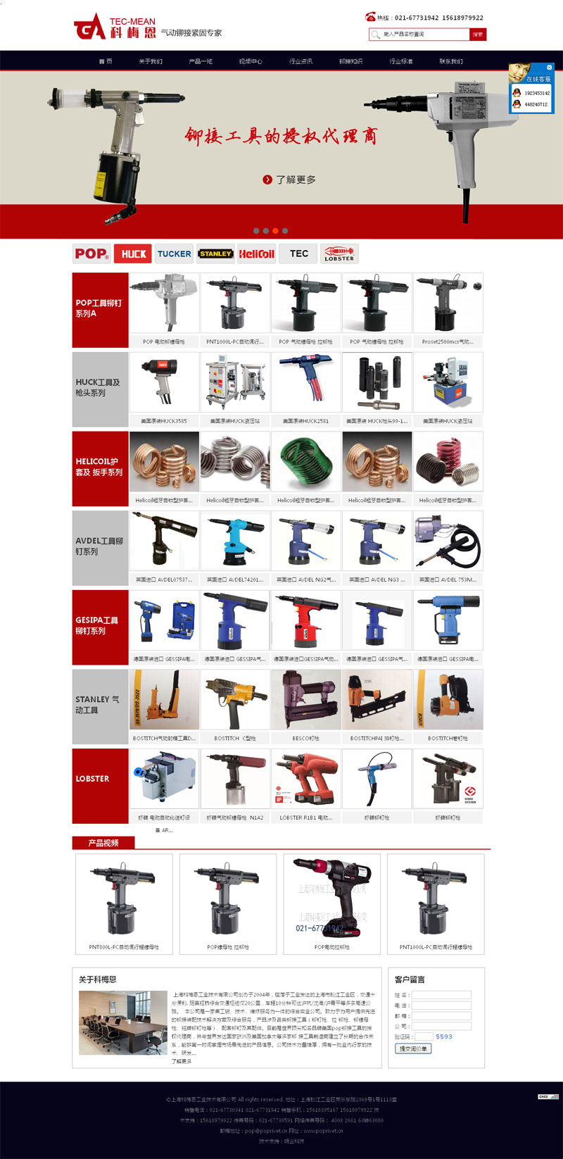 铆枪、铆螺母枪、铭牌铆钉枪等)、配套铆钉及其配件。目前是世界顶尖知名品牌美国pop铆接工具的授权代理商,并与世界发达国家欧洲及美国加拿大等多家铆