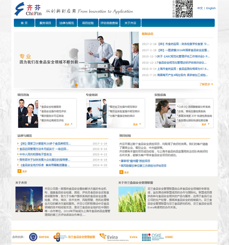 齐芬公司积极推动中芬食品领域的技术和经验交流,从2007年开始参与了重庆市政府和芬兰政府在食品安全领域的合作与交流,引入芬兰等欧洲国家食品安全领域的先进技术和经验,是芬兰食品安全组织(FOOD SAFETY MANAGEMENT FINLAND)在中国的唯一合作单位。